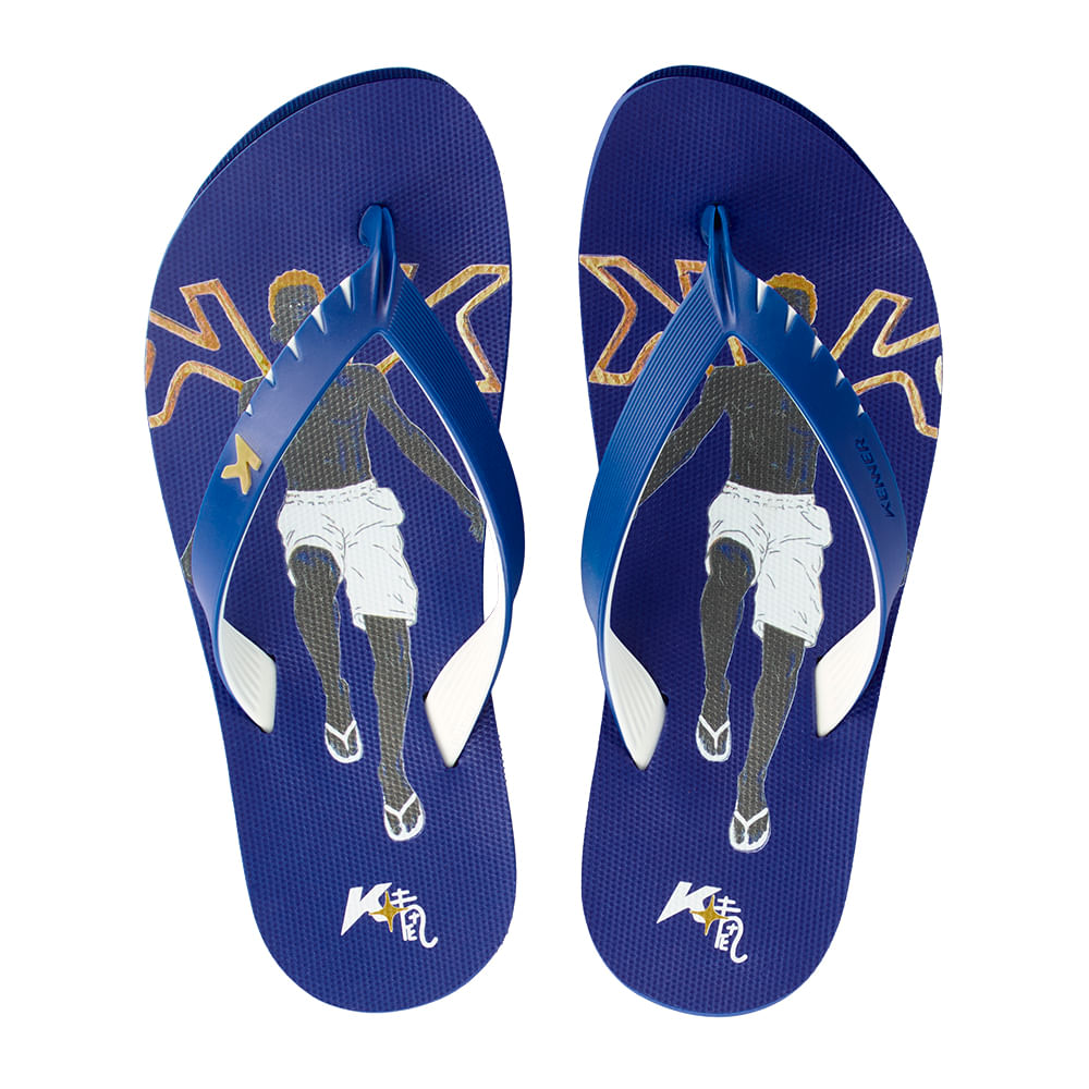 | DESC CABEDAL | Cabedal bicolor injetado macio e resistente na cor azul no exterior e na cor branca no interior |